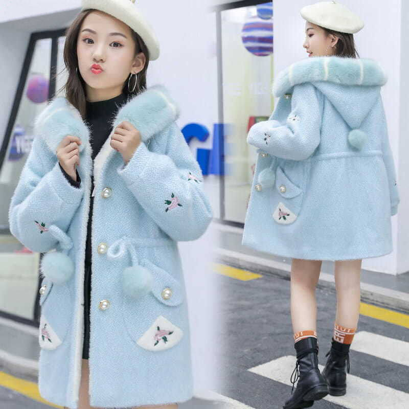Super-ocean girl's mink coat new winter dress in large girls long cotton-thickened dough coat