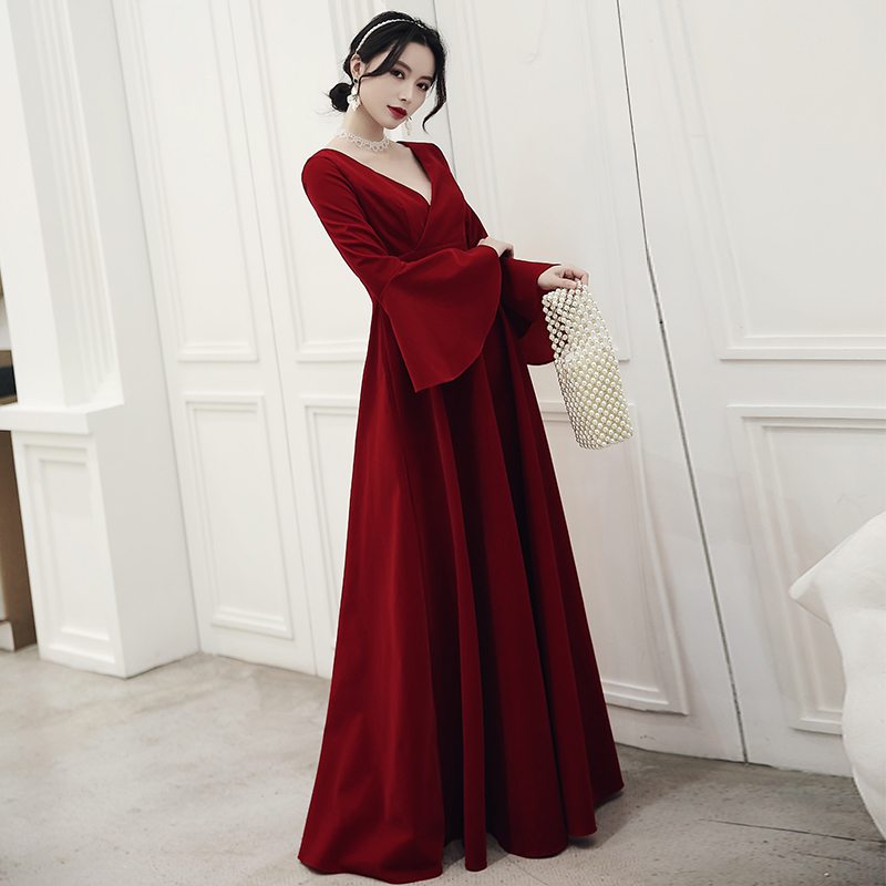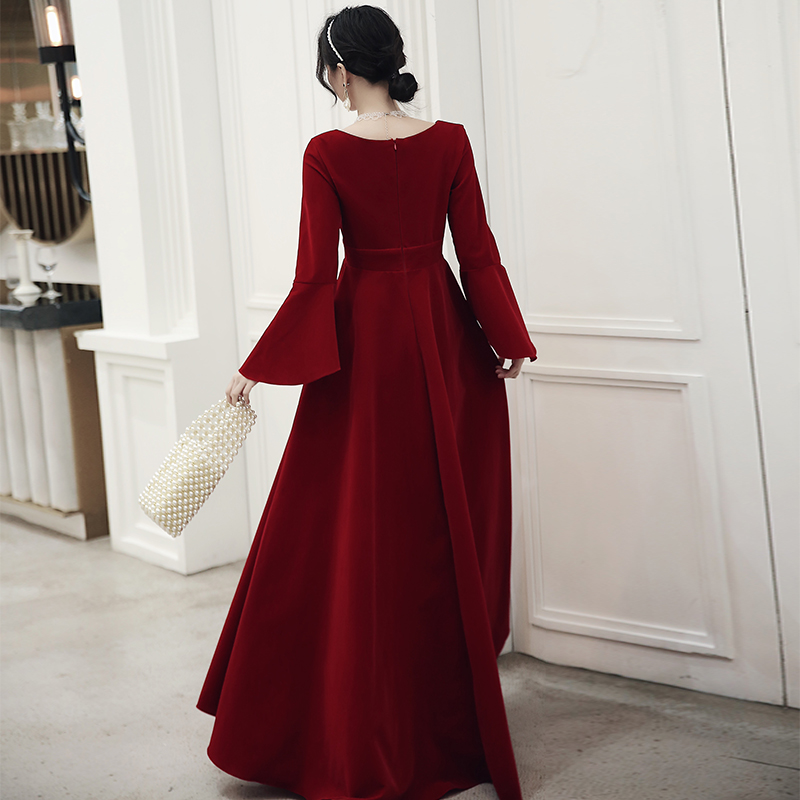 Pregnant women velvet toast bridal belly 2021 new wine red long sleeve banquet big size fat mm evening dress women
