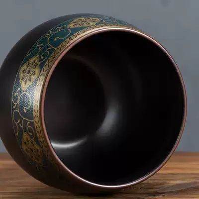 Ceramic tea residue cylinder Large capacity tea washing ash ash cylinder Household water kettle Black ceramic gilt pile flower washing large cup washing pen
