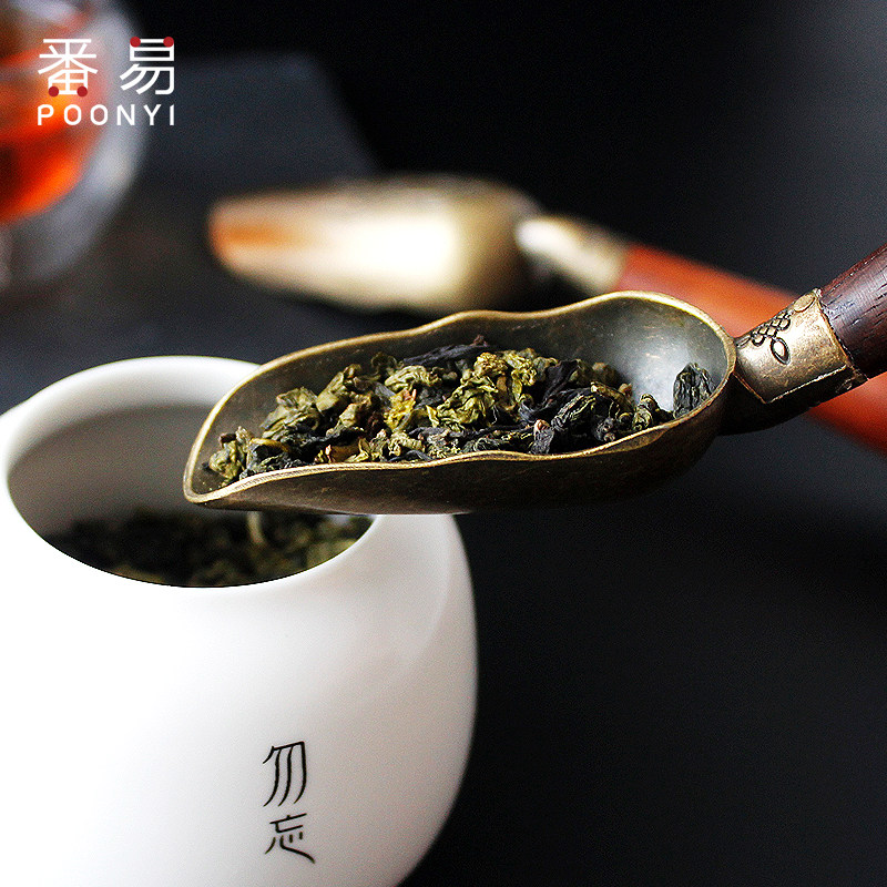 Ebony tea spoon tea spoon long handle single tea spoon copper small tea shovel kung fu tea set tea ceremony accessories to take tea spoon