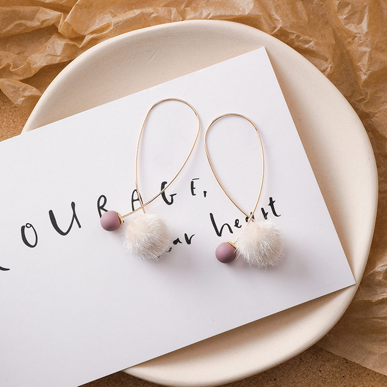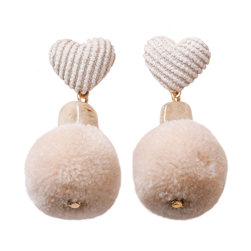 Suitable for winter earrings new damp hair ball earrings 100 lapped beige autumn winter plush autumn winter female temperament earrings