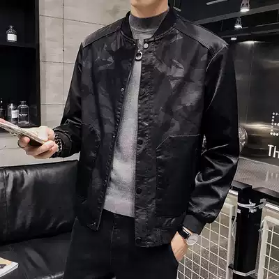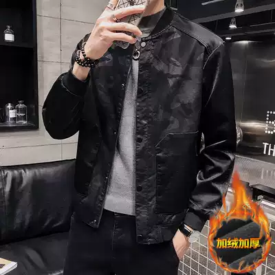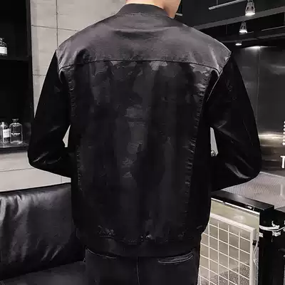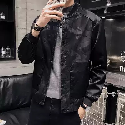 Autumn leather jacket men Korean handsome 2021 new men's fashion camouflage leather jacket coat Tide brand clothes