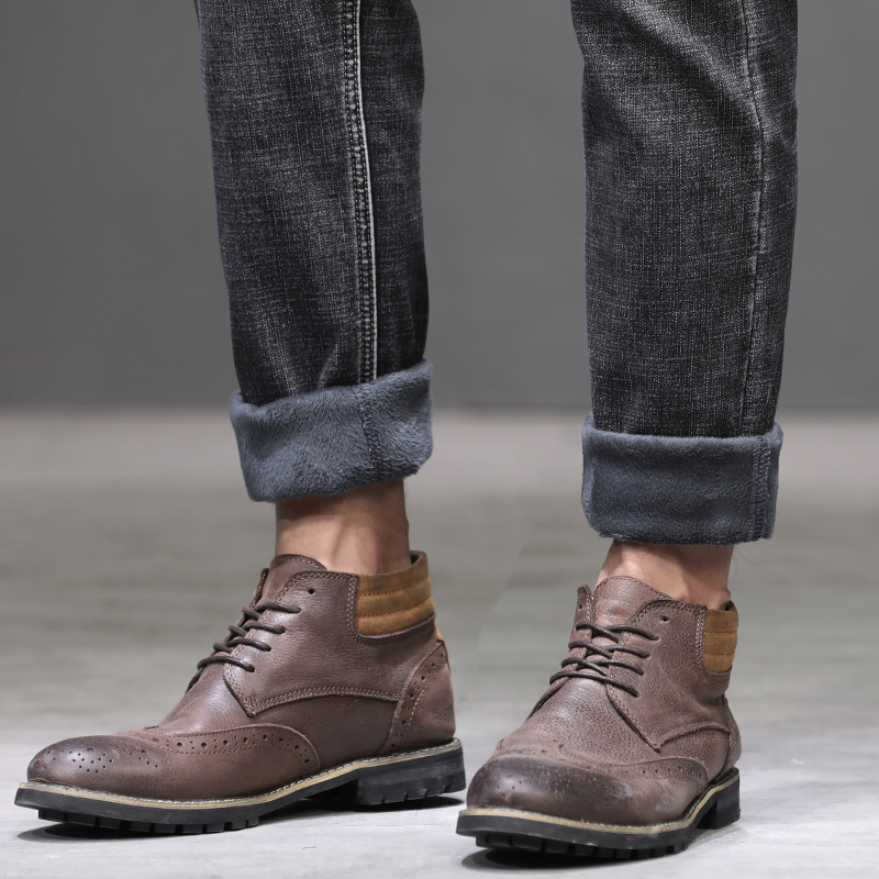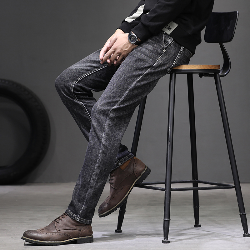 Winter cashmere thickened jeans men's straight loose fleece wool warm large size velvet autumn and winter pants tide
