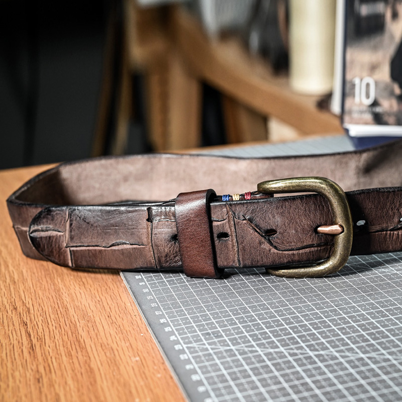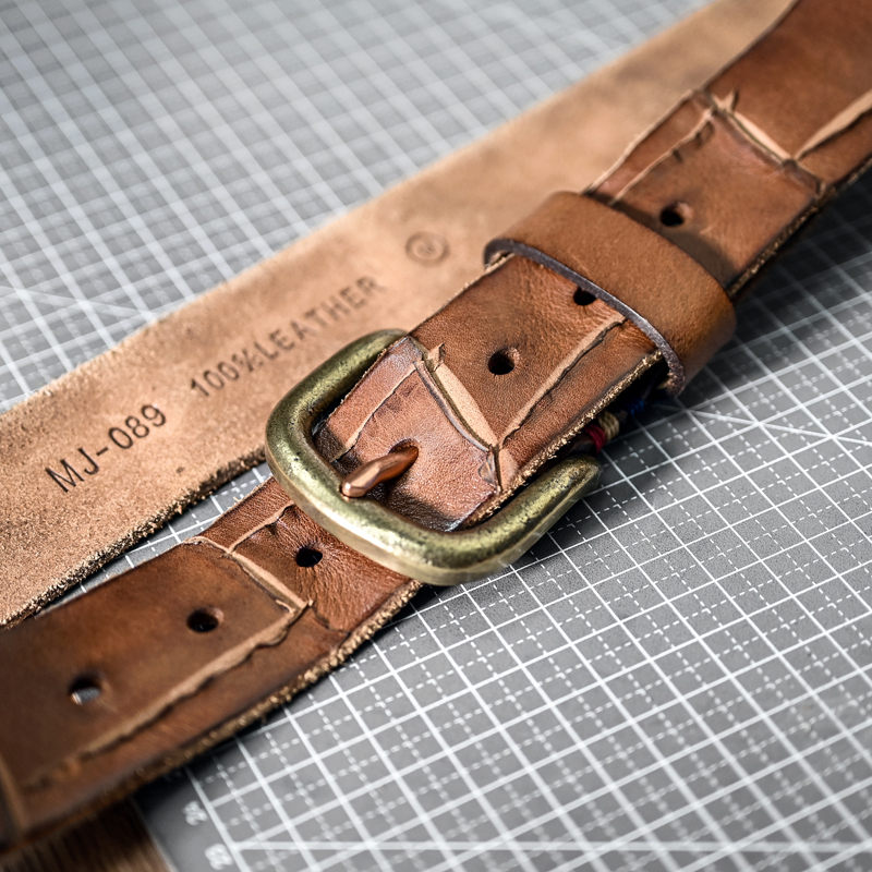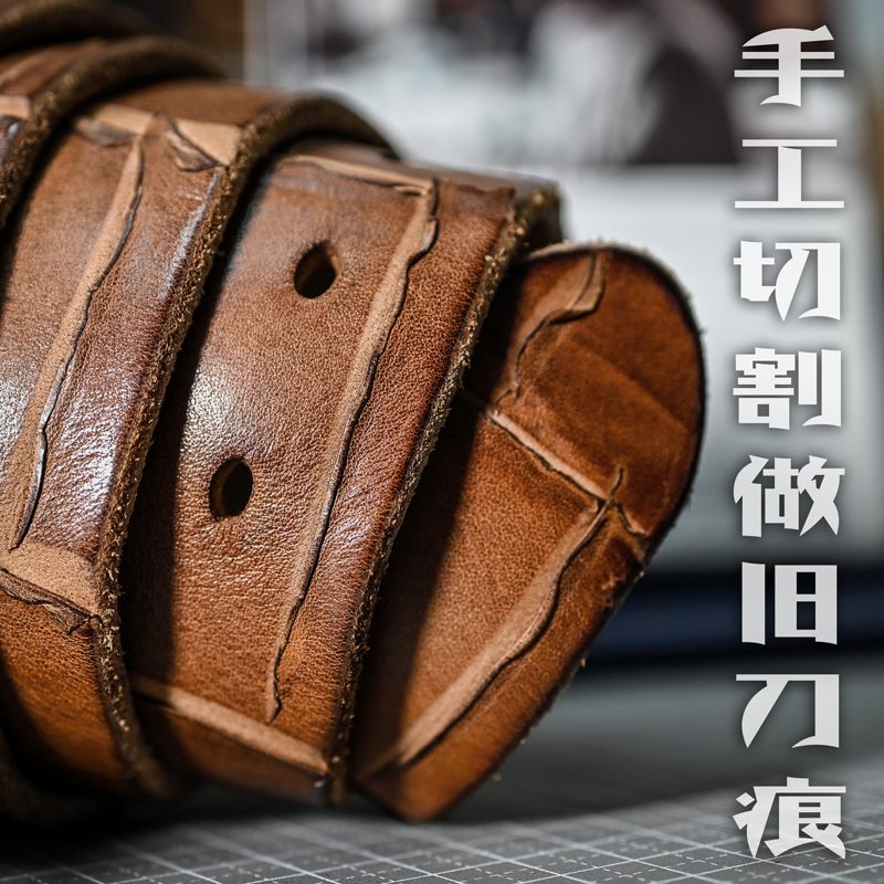 Copper buckle American retro belt Pure copper pin buckle belt First layer cowhide Men's leather old knife scar belt