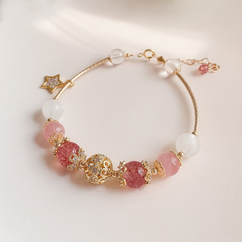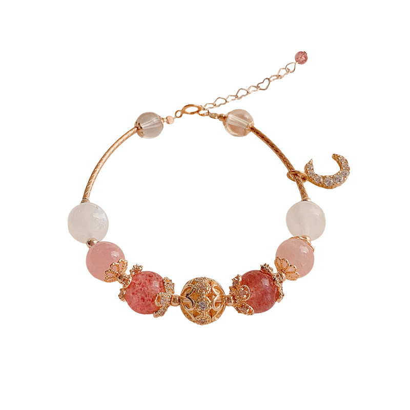 Starmoon strawberry crystal powder crystal moon light stone bag gold bracelet handmade female summer bestie small crowdsourced design