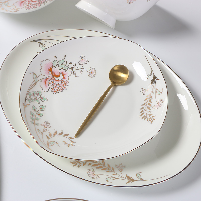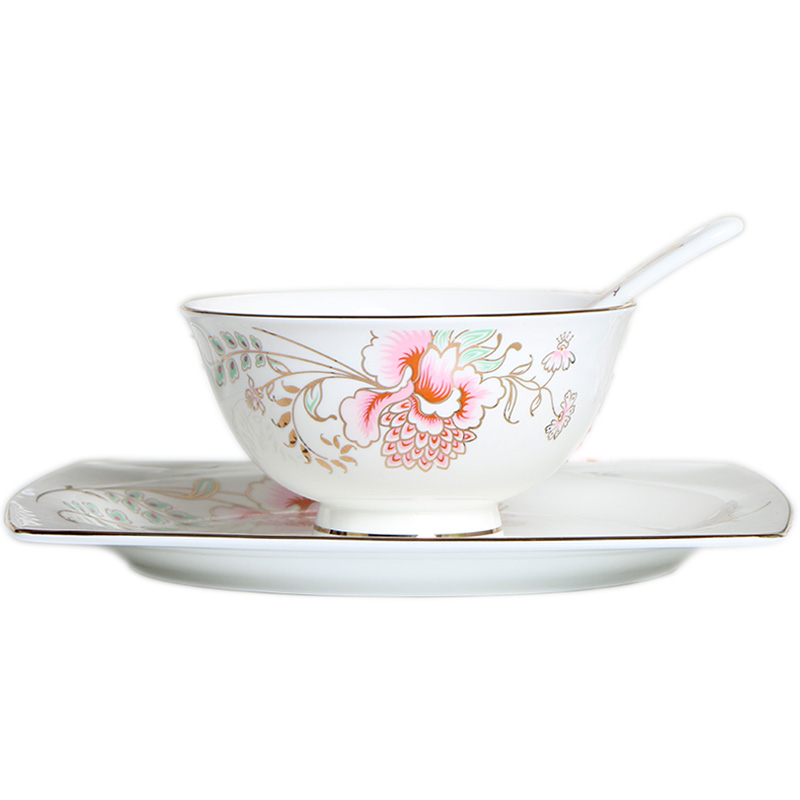 Jinpai bone China Chinese tableware household 8-inch square soup plate Bao wing plate Ceramic Phnom Penh high foot rice bowl instant noodle bowl soup bowl