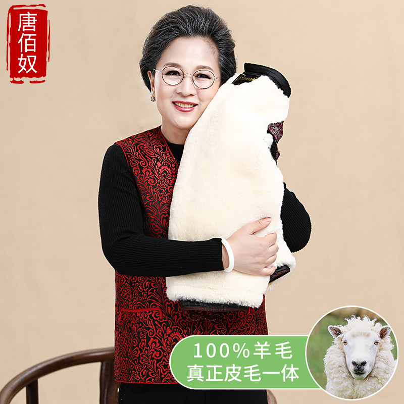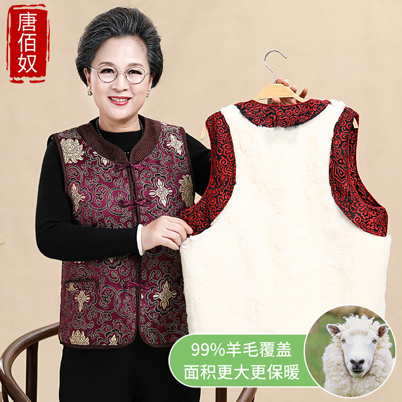Wool vest female fur middle-aged and elderly people warm vest mother dress mian kan jian grandma fitted vest coat