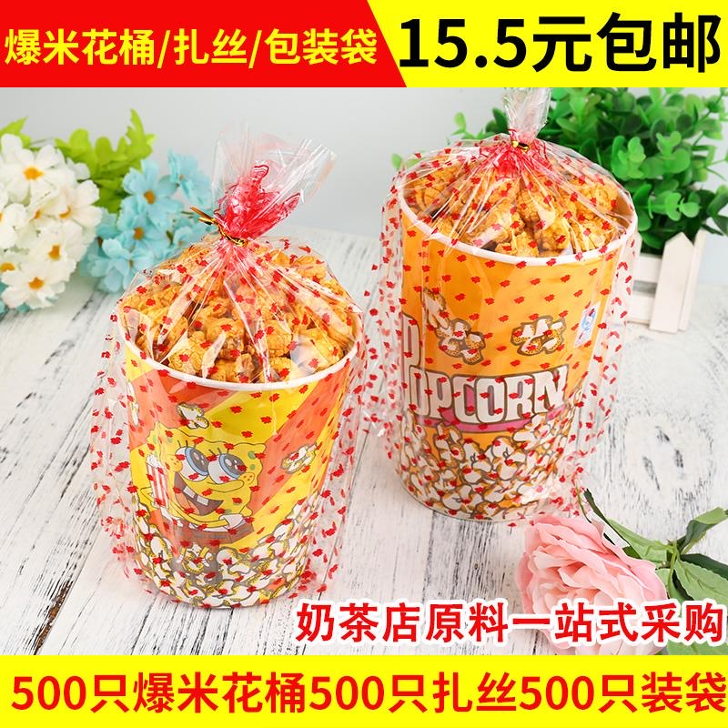 Popcorn bucket disposable popcorn paper barrel packaging barrel packing with cartoon cinema paper cup string bucket custom