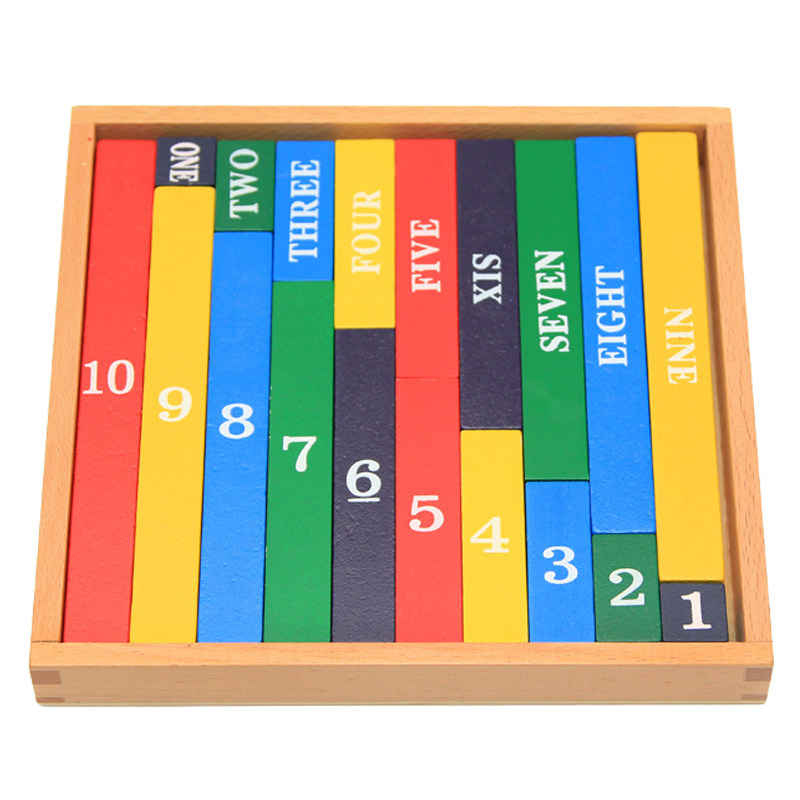 Montessori Montessori math teaching aids Montessori early education color decimal stick 1-10 English corresponding board