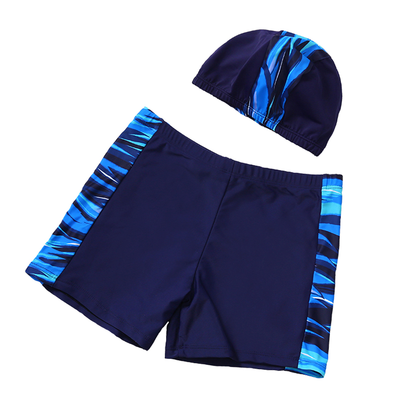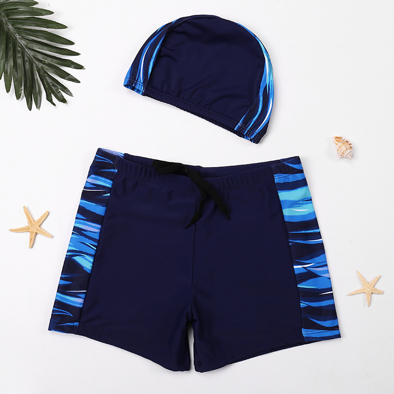 Kids swim trunks in big boy teenage student camouflage flats swim cap set professional swimming quick dry