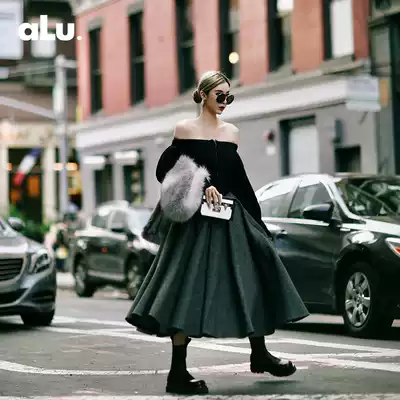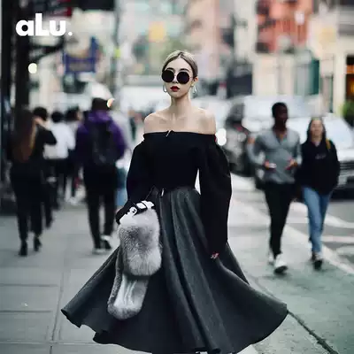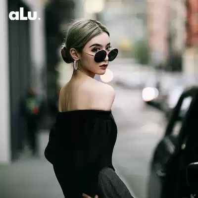 ALUONLINESHOP European and American bloggers exclusive shape body Fishbone design one-collar black slim top