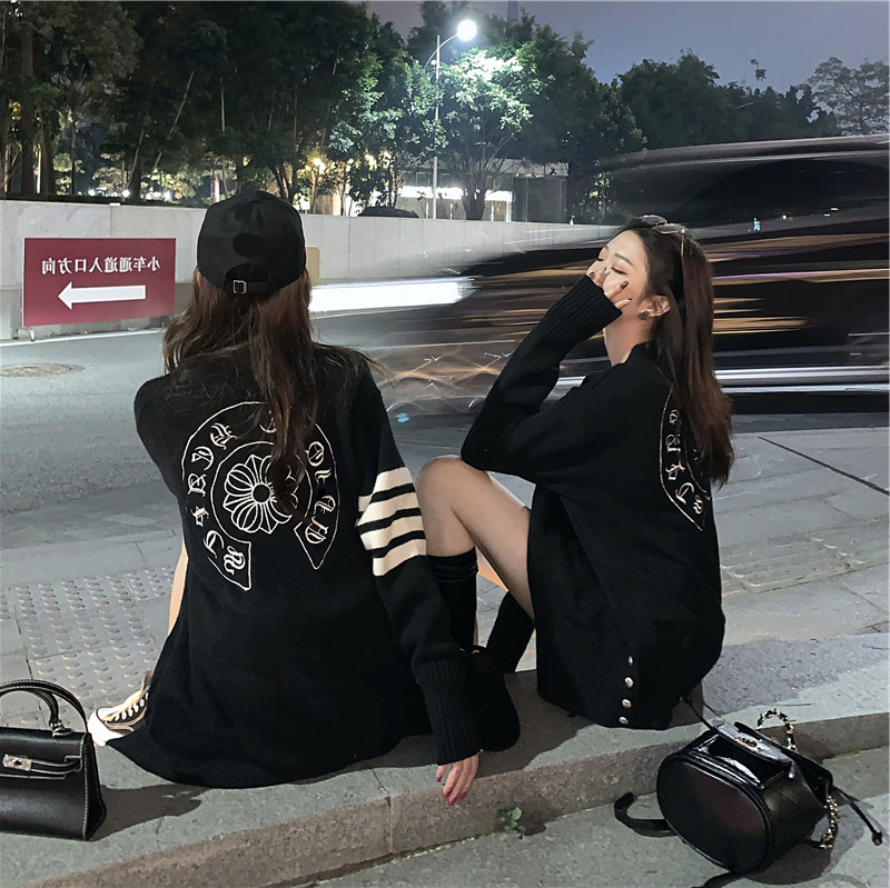 Cardigan coat women knitted 2022 new women's long sleeve coat foreign style lazy wind loose spring and autumn wear coat