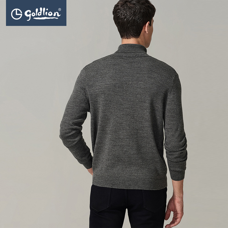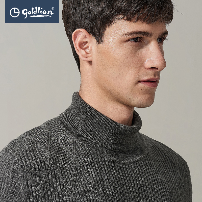 Ginley Comes Winter Men's Wool Bone Wave Textured Striped Splicing Rhomboid High Collar Sweater Hooded Sweatshirt]