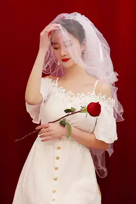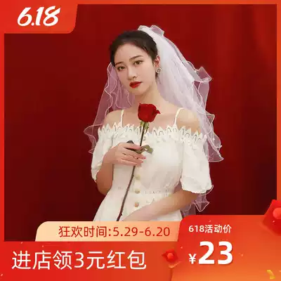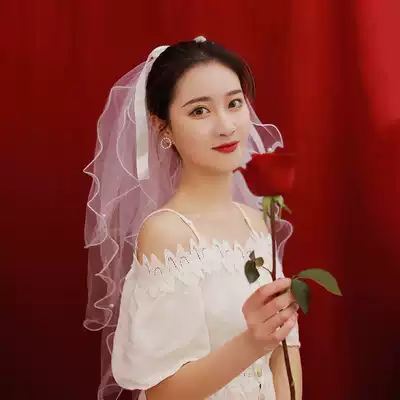 Retro bow multi-layer puffy veil female Korean bride photo short version wedding dress accessories headdress super fairy forest series