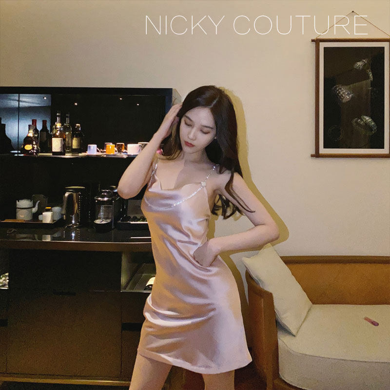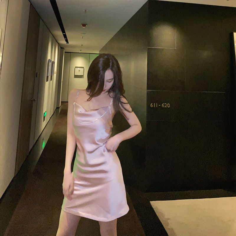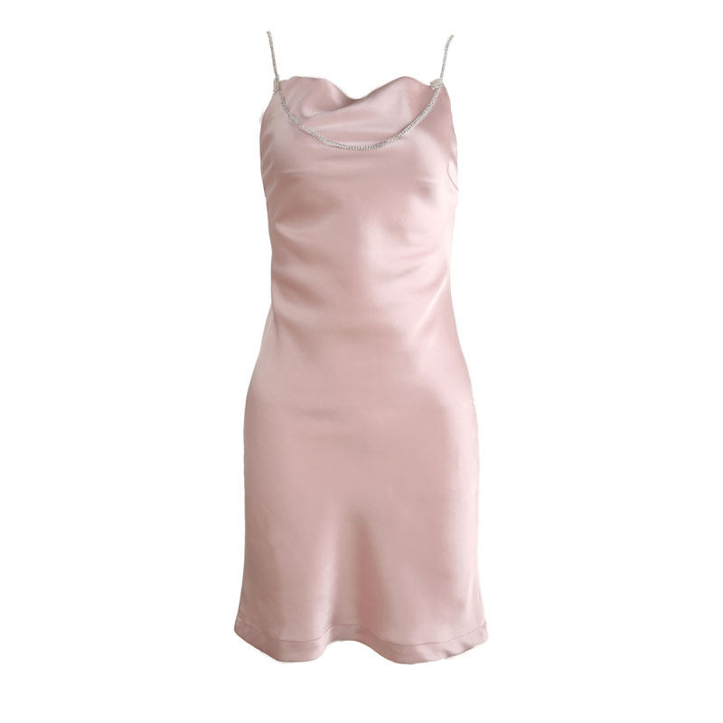 nicky Paris Little Sister Drilling Chain Method Triacetate Pink Harness Ocean Dress Woman Cashew's slim hanging band dress