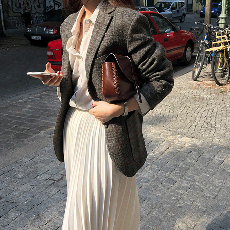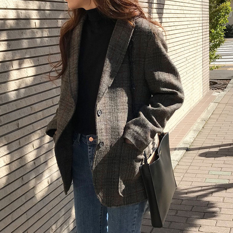 Spot South Korea 2022 Autumn Dress Chic Retro Wool, Casual Little Western Dress Plaid and Suit Women