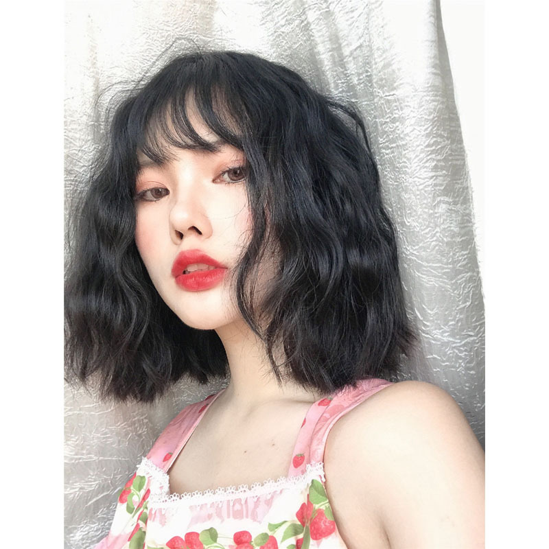 Japanese cute air bangs women's big brother Lolita male ladyboy wig cos supplies black egg roll head