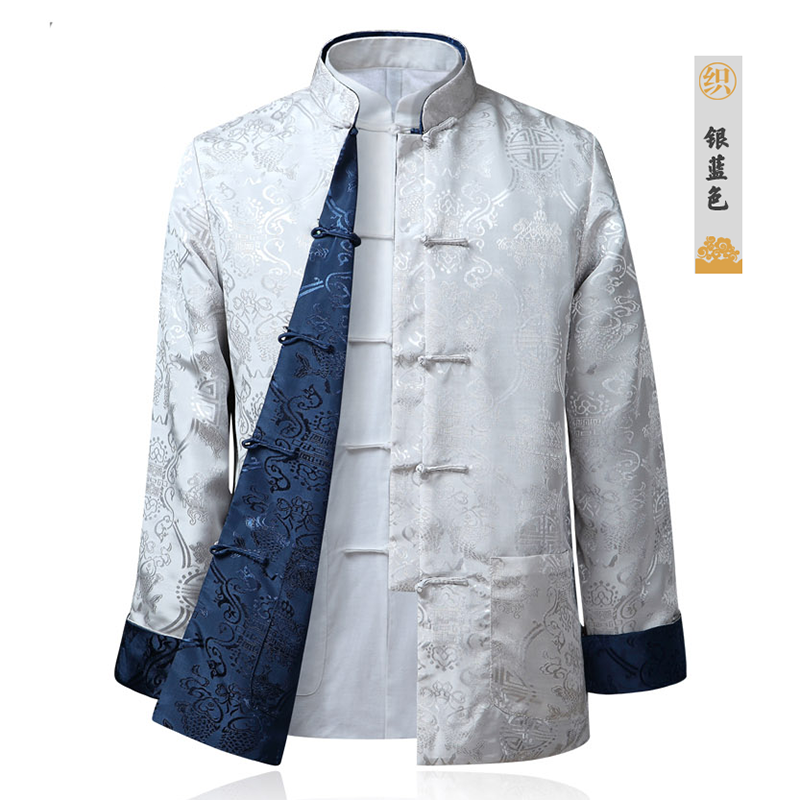 Middle aged Dad clothes Chinese wind stand collar pan button blouses Handwear Spring and autumn men Long sleeves Down with double face wearing jacket