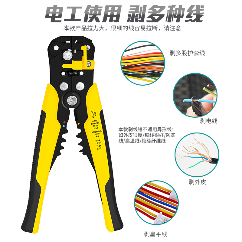 Green black handle press-stripping pliers blue handle flower trim pliers yellow black handle automatic exfoliating pliers red shank stripper 7 inch automatic wire stripping pliers (HF-A) 7 inch bicoloured handle cable pliers 7 inch bicolor handle peeling wire pliers
