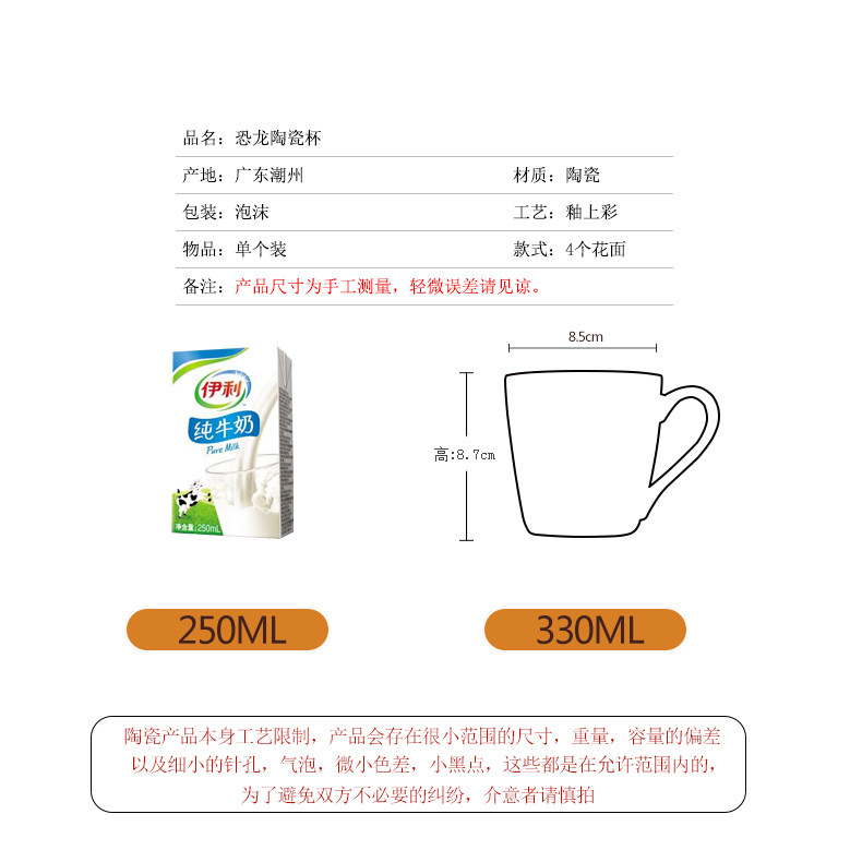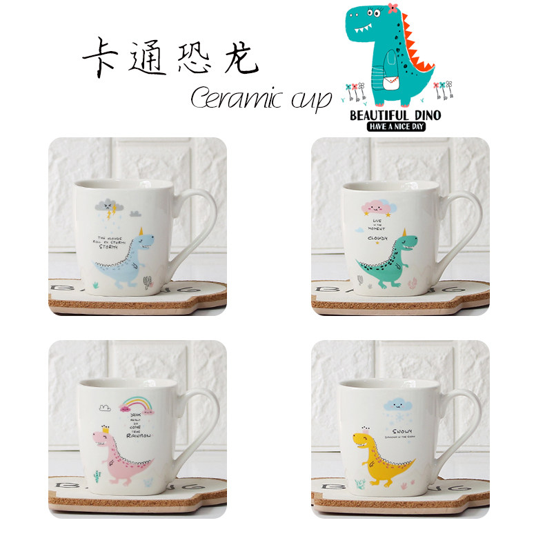 Chambon Dinosaur Ceramic Water Glass Woman Cute Home Creative Personality Breakfast Mug Mark Cup Single Custom Pattern