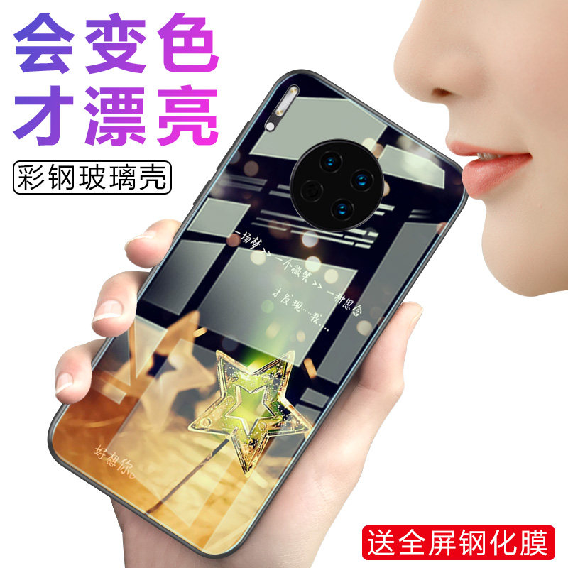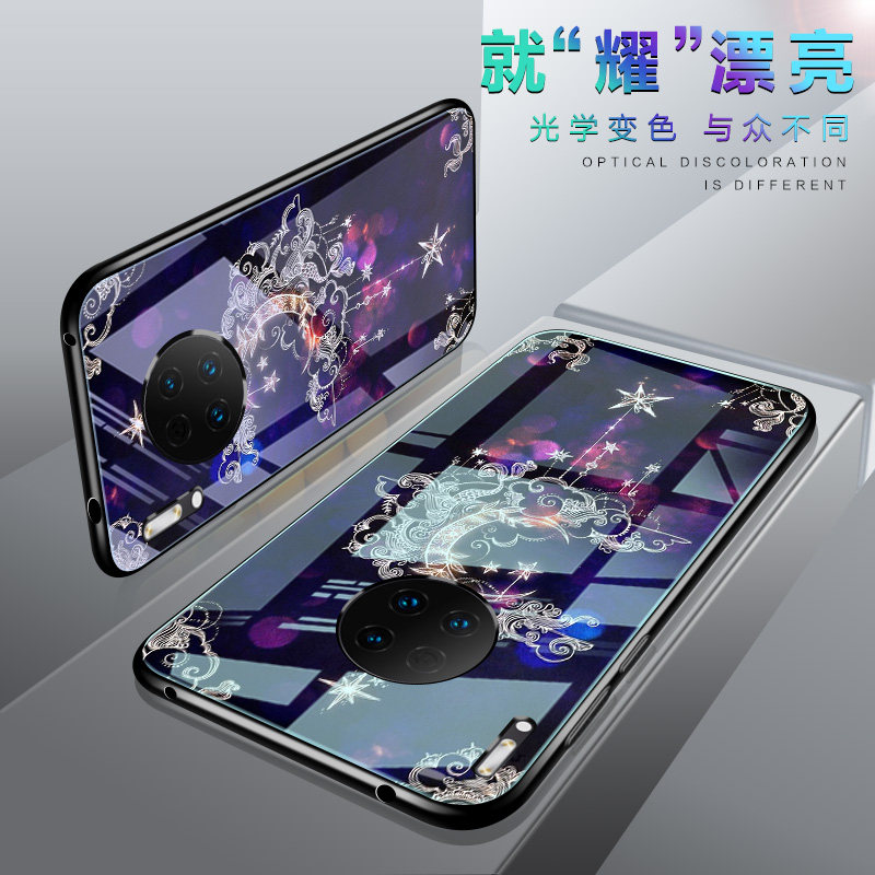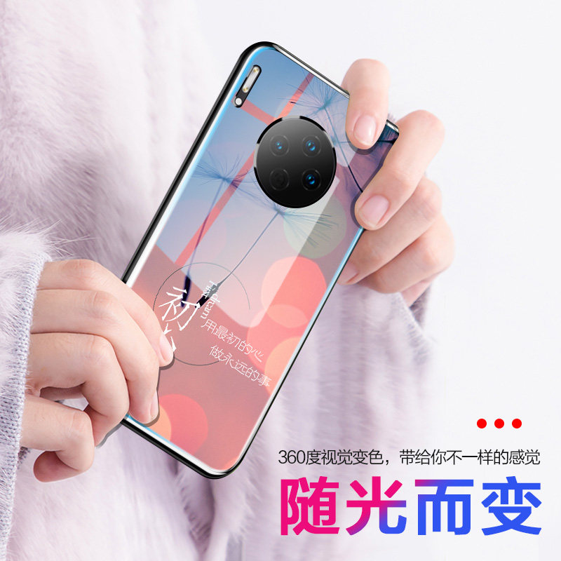 Suitable for Huawei mate30pro mobile phone protection shell glass blue light Mate30 protective sleeve discolored tide shell upscale women's por5gmete30pr0 high face value ultra-thin