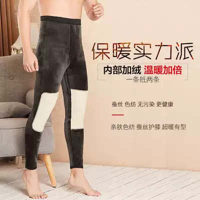 Blue diamond beauty silk warm pants men plus velvet winter slim youth large size knee padded pants men tight
