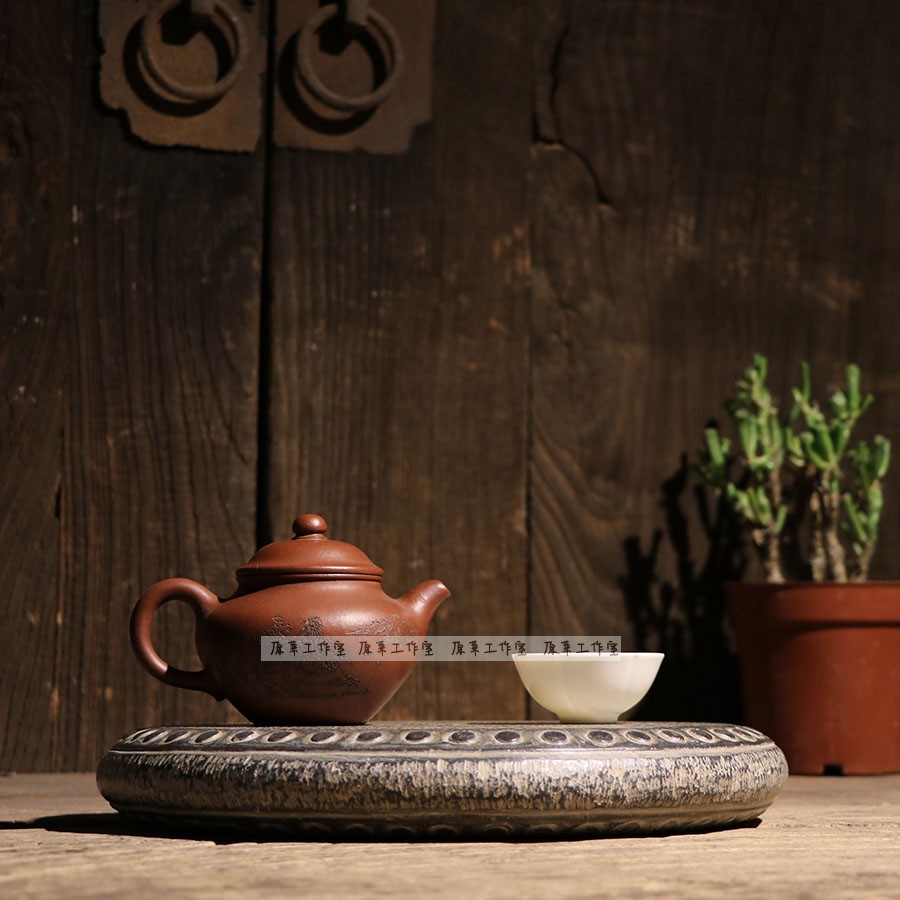 Green Stone Engraving Imitation Ancient Vegetarian Noodles 30 cm Stone Drum Base Dry Tea Table Pot Bearing Cup Tovin Play Pendulum-Taobao
