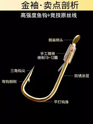 No 2 golden sleeve fish hook No 3 No 4 tie the fish hook hand strap line double hook anti-winding Crucian carp fish hook Jinxiu fish ditch