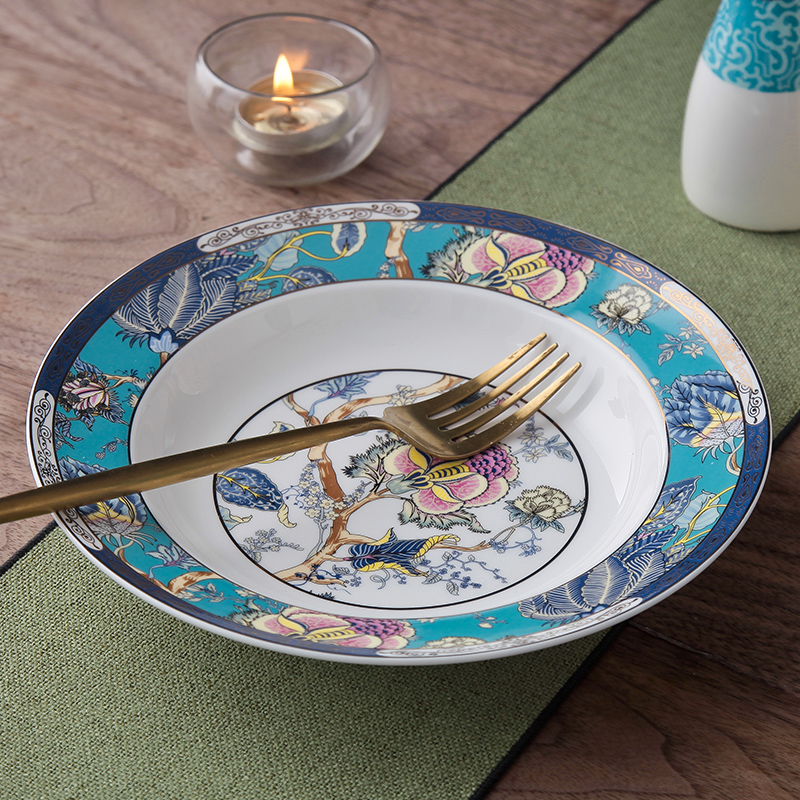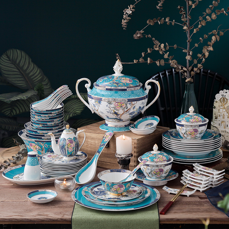 Light luxury ceramic dish set household bone ceramic tableware Chinese high color fine bowl bone ceramic dish spoon combination