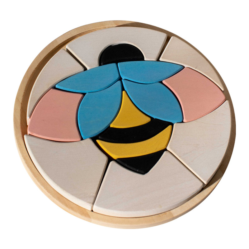 AVDAR Imports Linden Wood Small Bee Puzzle Building Blocks Toy Solid Children Young Children Puzzle 1-3-4-6 years old