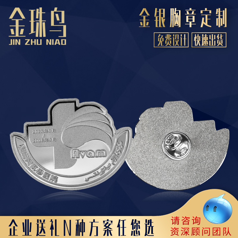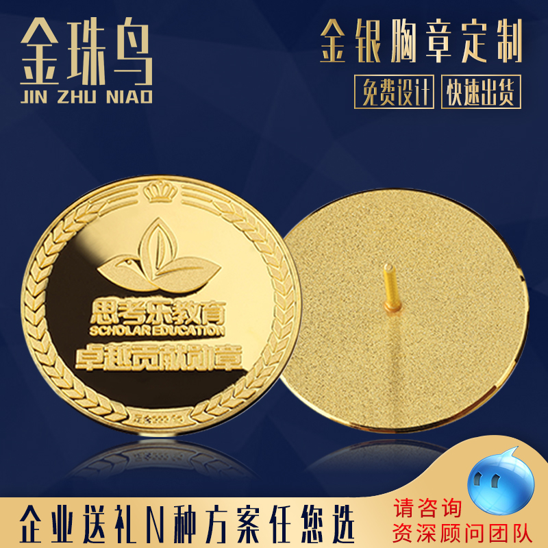 Gold bead bird custom commemorative coin sterling silver custom pure gold metal badge badge logo brooch medal silver coin 999