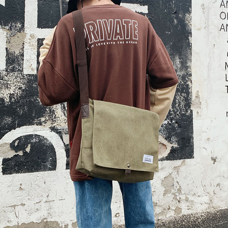 Japanese shoulder bag men's messenger bag canvas casual boy backpack Korean version trend student messenger bag tide brand bag