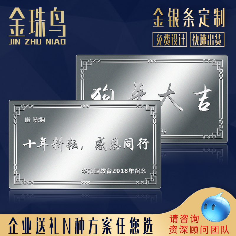 Gold bead bird silver bar Sterling silver 9999 investment company anniversary custom lettering commemorative gift foot silver 10 30 grams