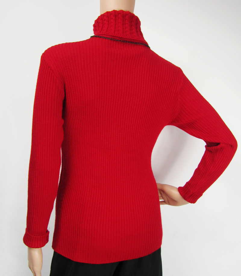 Deficit in clear cabin Mom high collar Bottom Jersey Woman Autumn Winter Thick Middle Aged Knitted Wool Jersey Long Sleeve T-shirt Red