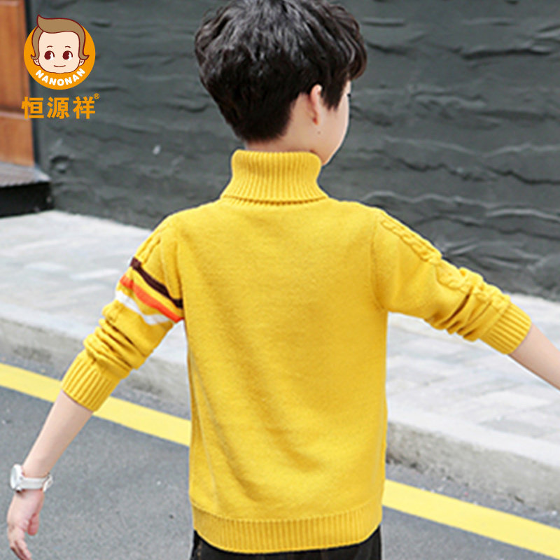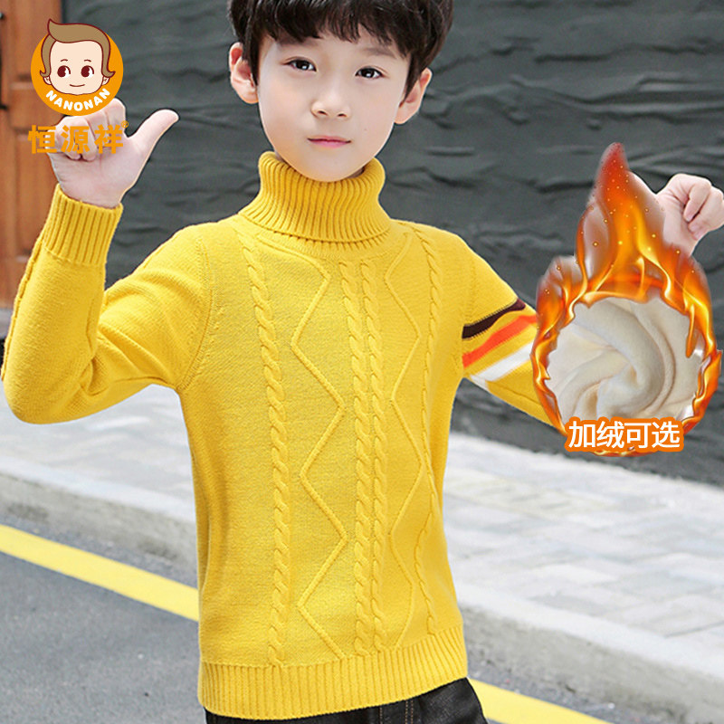 Hengyuan Xiang Boy High-collar sweater Spring-autumn CUHK Thickening Pure Cotton Knit Cardio-hoodie Children Dress Children Plus Suede Beating Undershirt