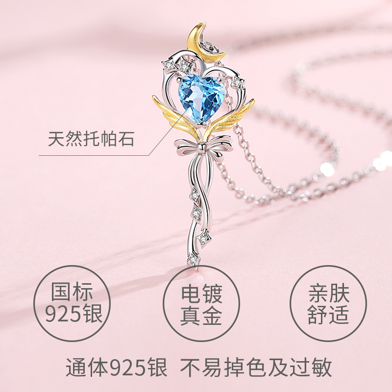Waiting Microtine Magic Wand Necklace Lady Moonstone Pure Silver Lock Bone Chain Pendant Small Crowddesign Jewelry Gift-Taobao