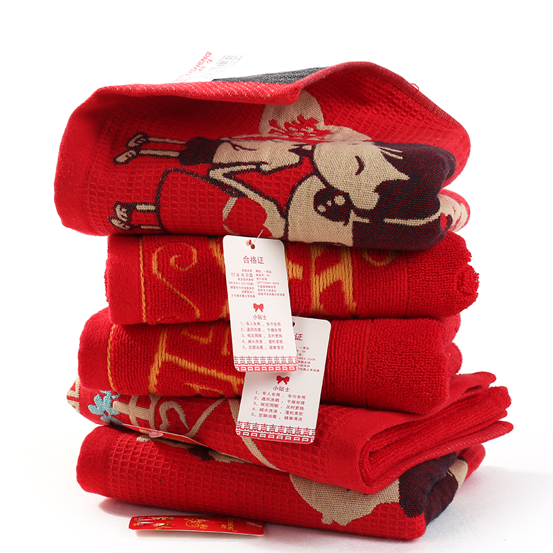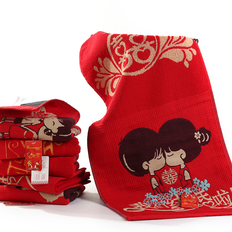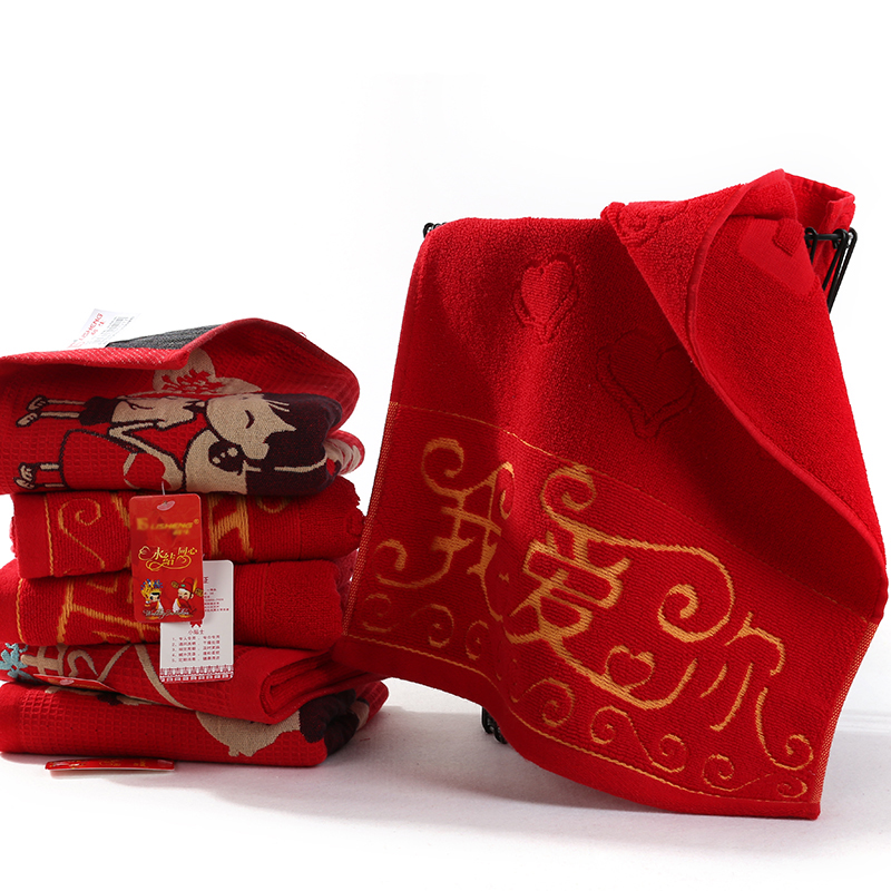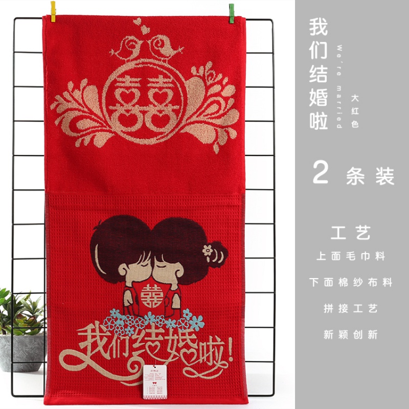 Pure cotton strip lovers towel 2 Gift happy words wedding wedding dress big red all-cotton back wedding wedding towels