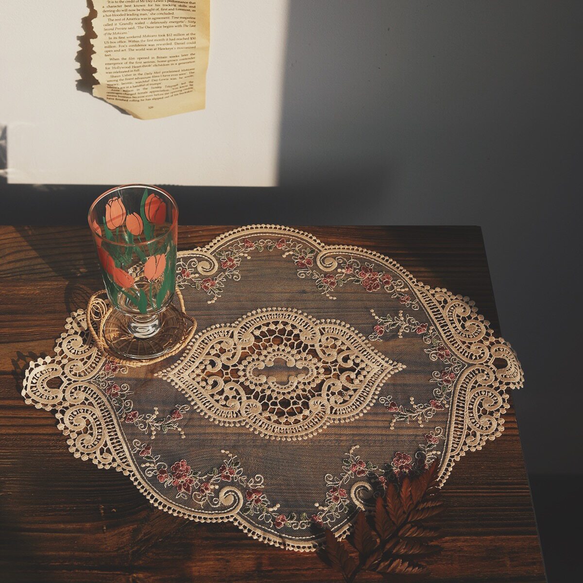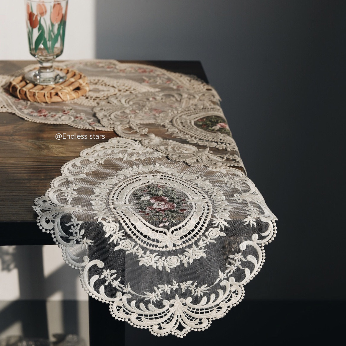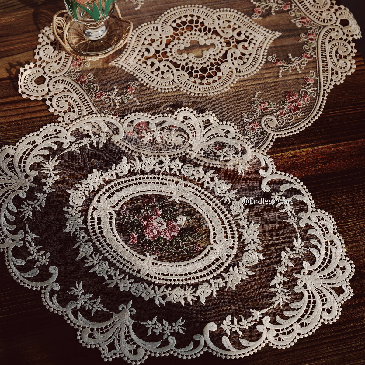 ES) ins style retro French girl lace embroidery placemat floral placemat chic swing background cloth bed and breakfast