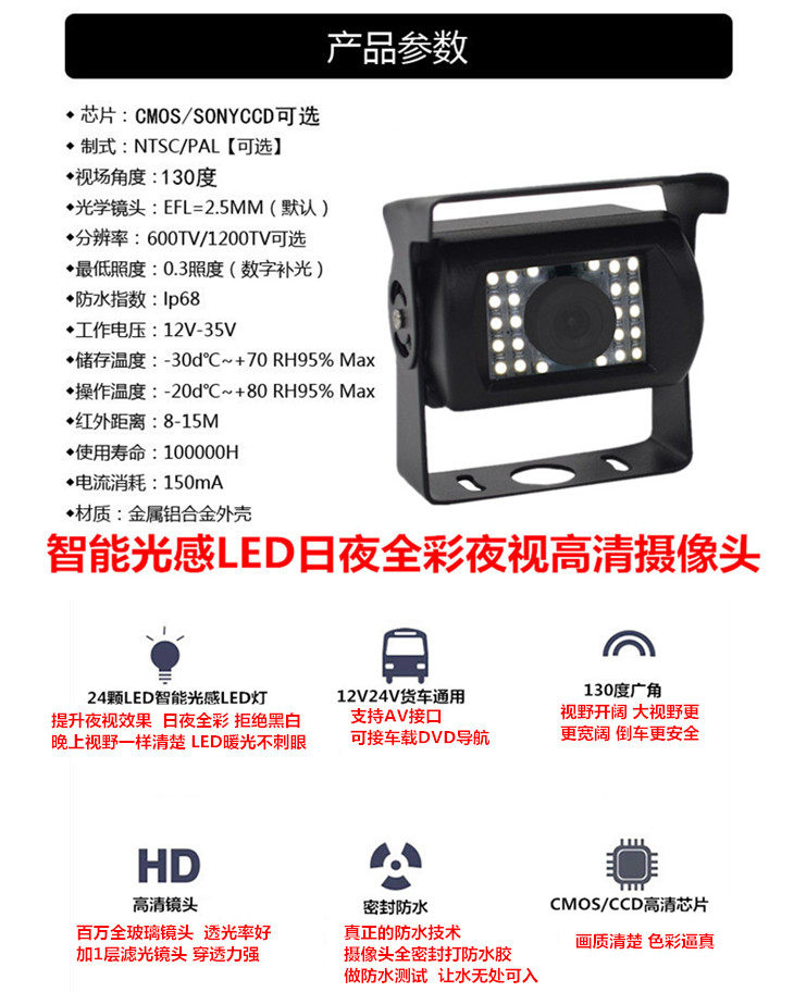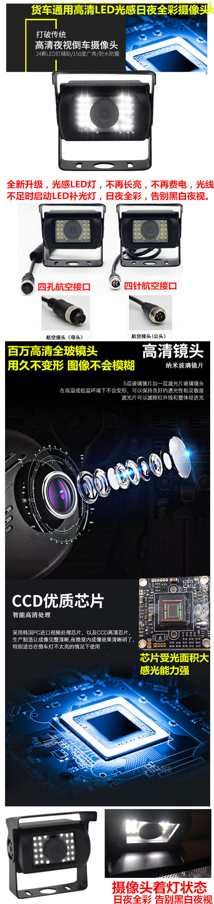 24V Dongfeng Tianlong Tianjin commercial vehicle semi-trailer original car screen special reversing image camera LED night vision