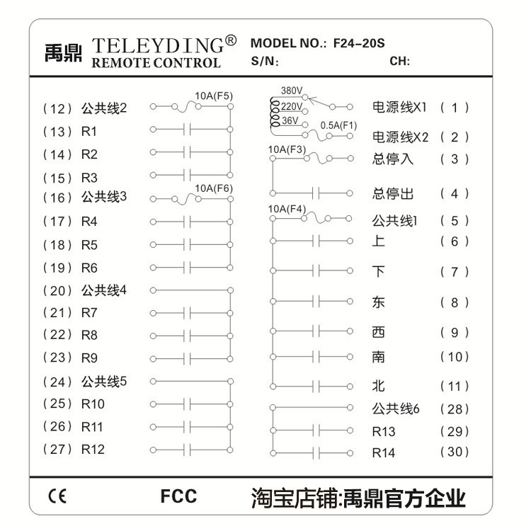 Single-fit F24-20S transmitter handle Set of 380V (1 Fat 1 collection) Set of 220V (1 Fat 1 collection) Set of 36V (1 Fat 1 collection) Set of 24V (1 Fat 1 collection)