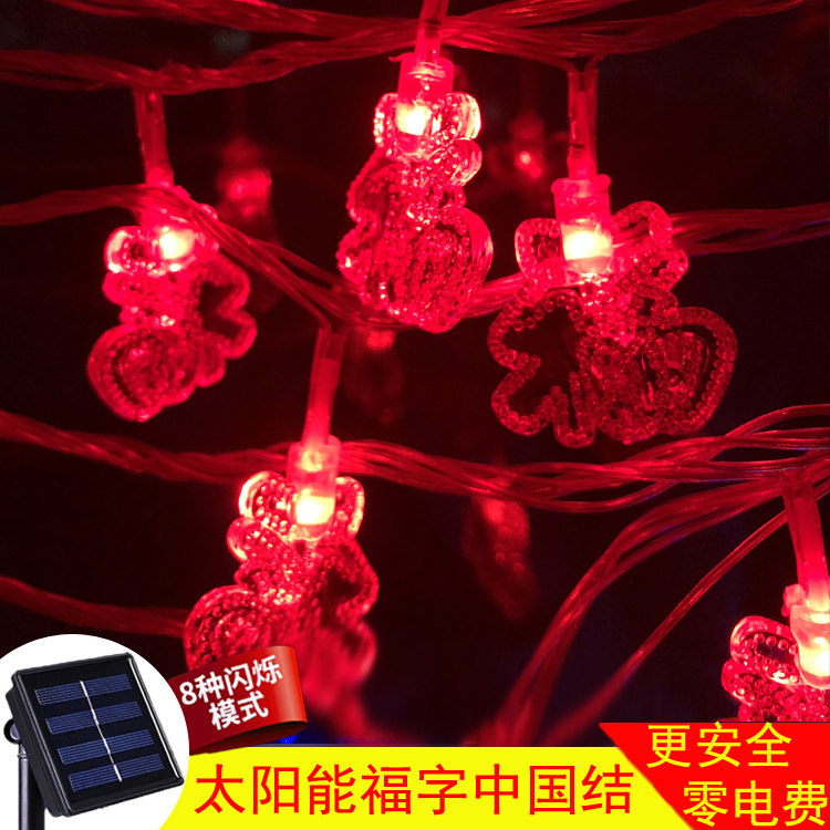 Solar Fu word Chinese New Year Chinese New Year decorative lights rural yard lights flashing lights string lights outdoor courtyard waterproof