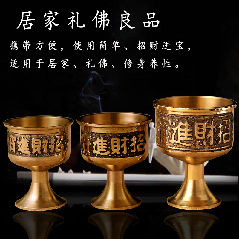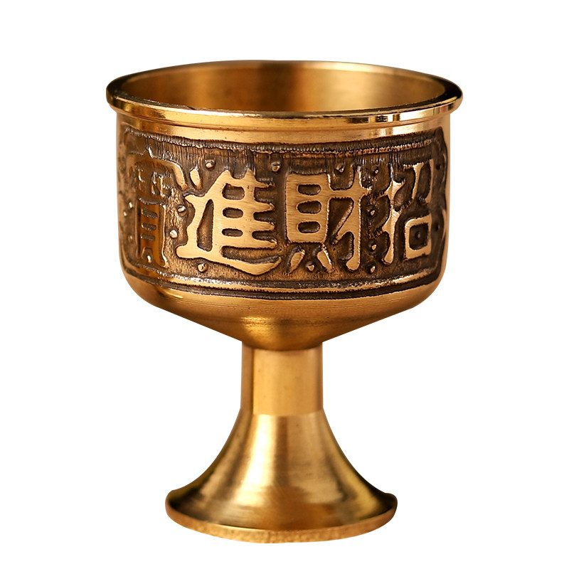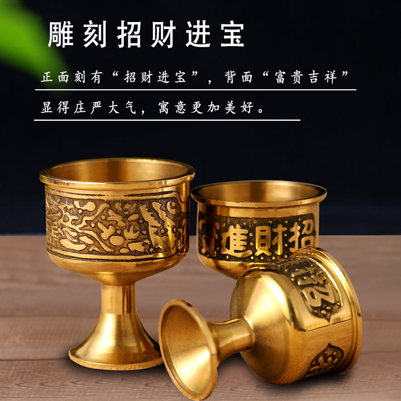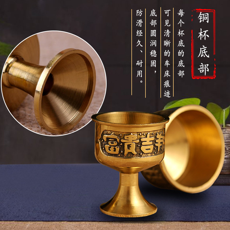 Pure copper rich and auspicious wine cup antique tribute cup Buddha front Guan Gong water cup for the God of Wealth family to worship the Buddha cup