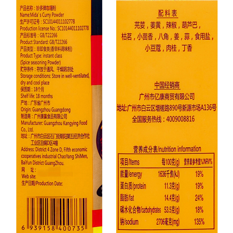 Brilliant curry curry powder 350g bottles Indonesia flavored curry rice curry chicken fried rice seasonings
