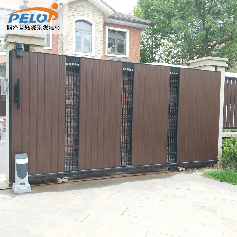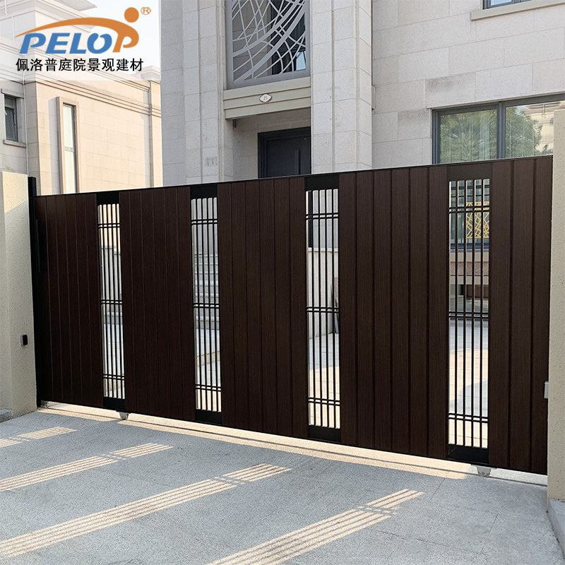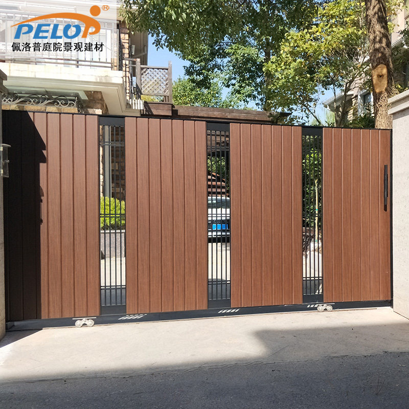 Pelop imitation wood grain aluminum alloy Villa garden automatic door Sliding door Entry door Villa door Garage door