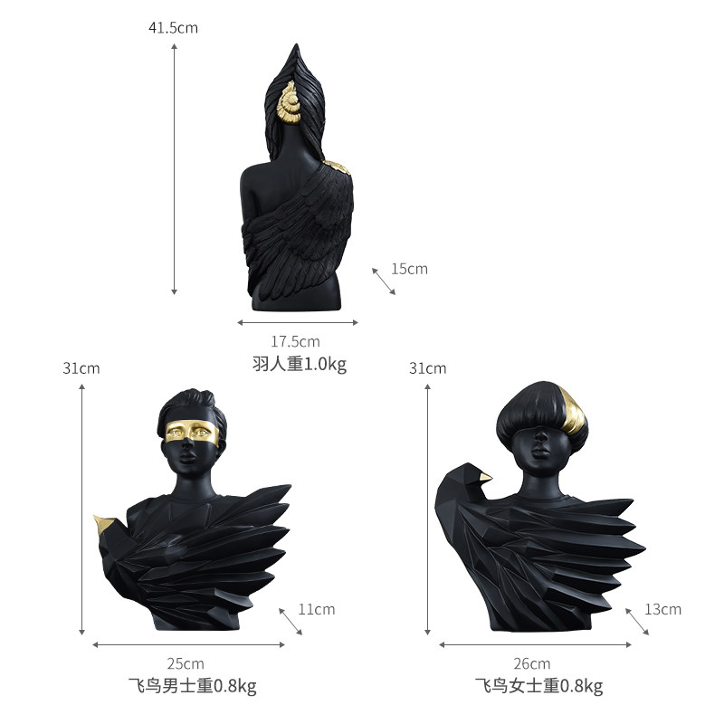 Flying Birds Men Fly Birds Lady Birds Feather Sculptures Bust