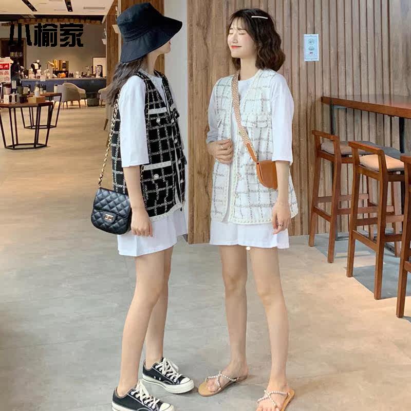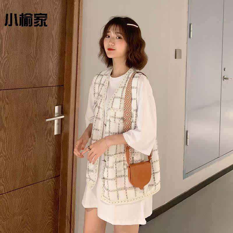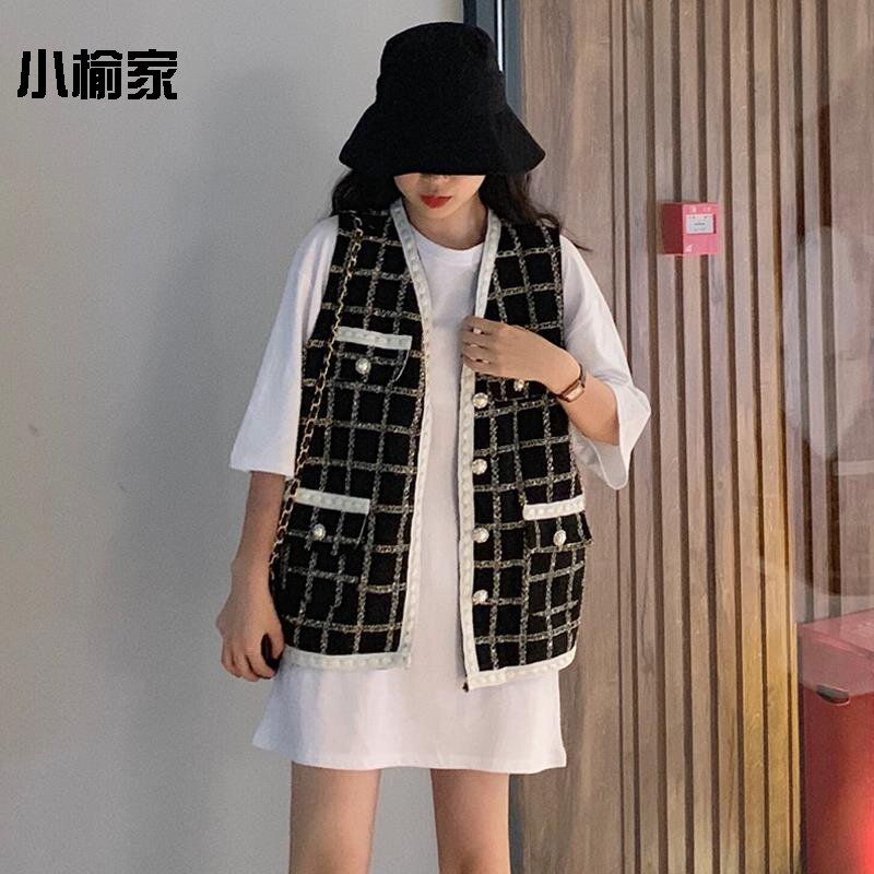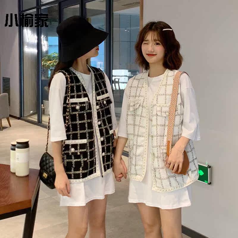 Retro Plaid small fragrant wind vest autumn 2019 new Korean version loose foreign style sleeveless coat female students wear