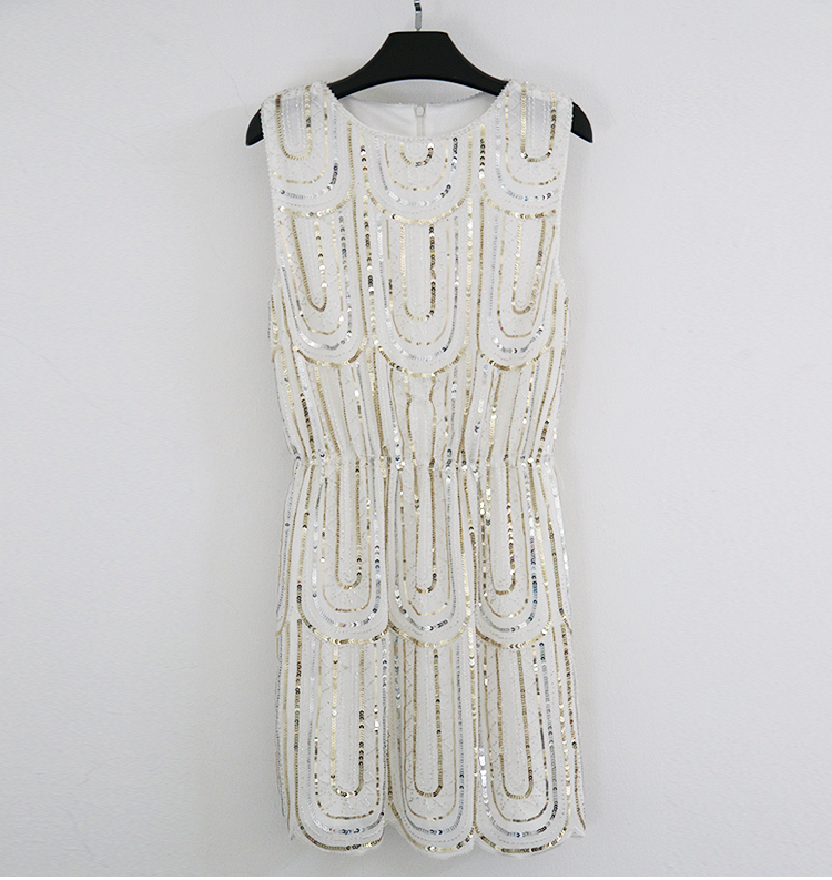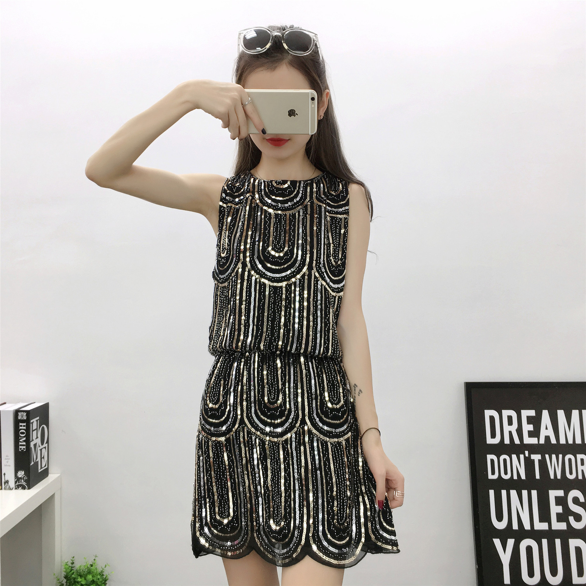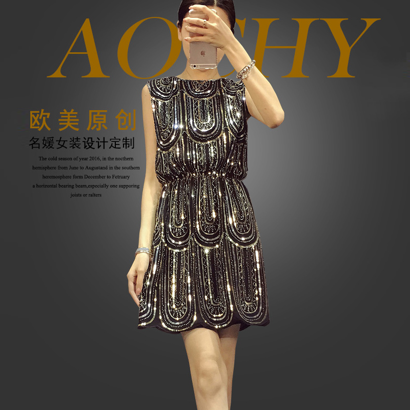 New European station ladies' clothing luxury beaded sequins sleeveless dress everyday fashion evening dress women