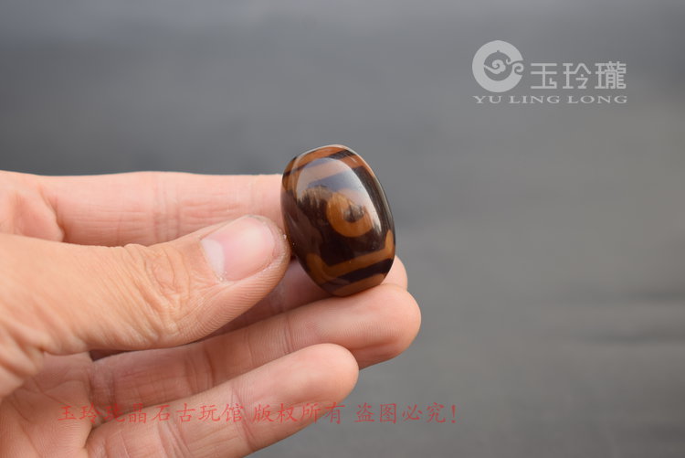 Three-eyed Dzi pendant with bead mirror bright Tibetan old agate chalcedony Dzi bracelet top bead collarbone dzi