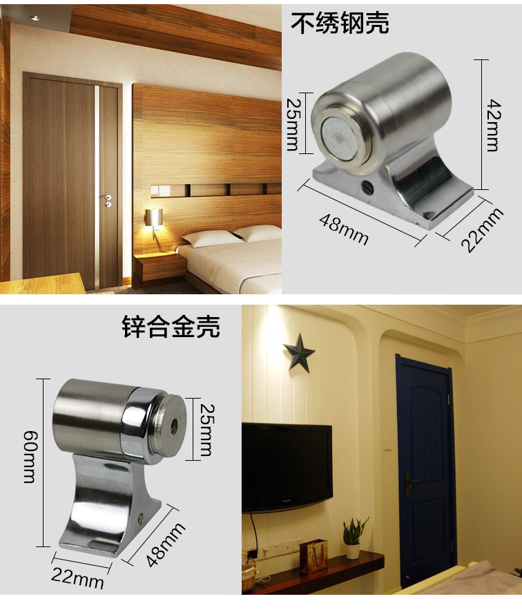 Gagahouse door Magnetic geomagnetic door blocking high foot anti-crash tripod Stainless Steel Door Suction strong suction perforated dressing room