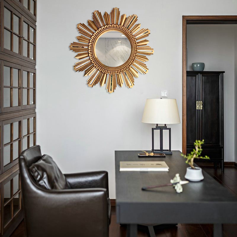 Living room decorative mirror restaurant dining side wall hanging porch mirror American light luxury creative sun mirror wall background wall